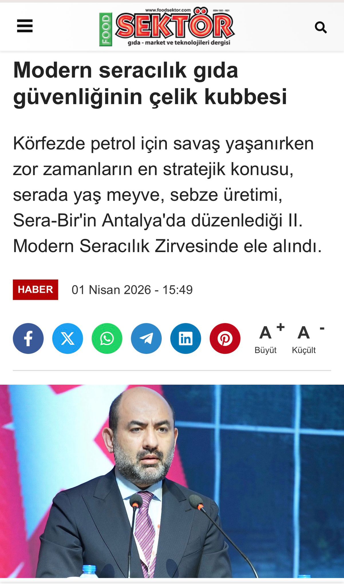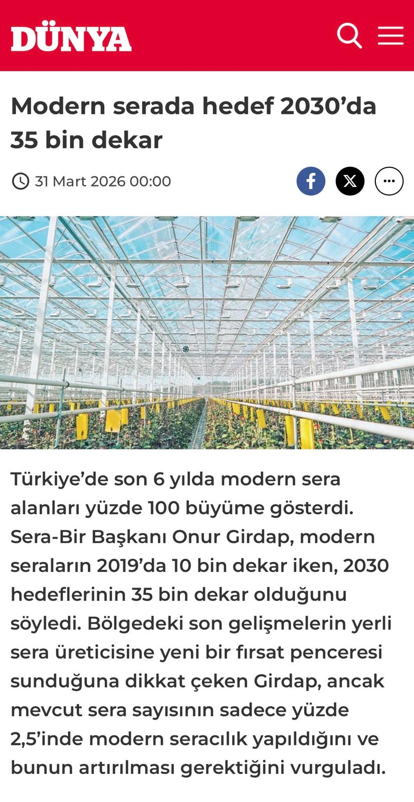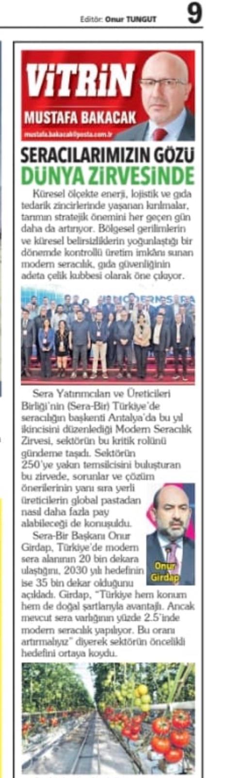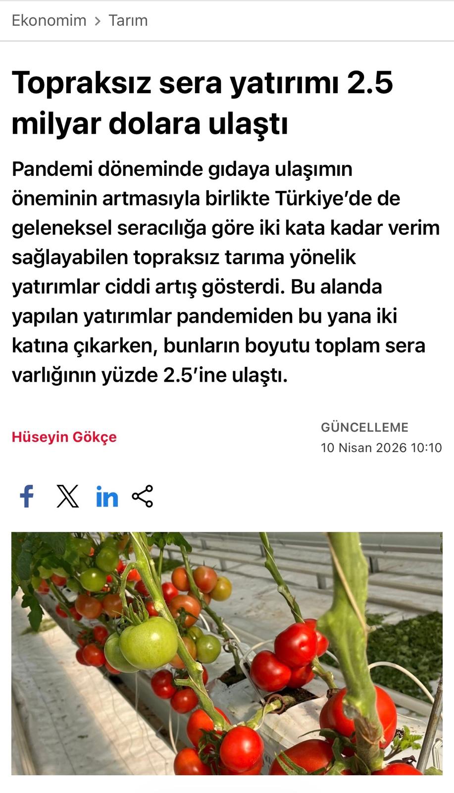 “Türkiye’de yaklaşık 12 milyon ton domates üretiyoruz. Bunun yaklaşık 3,5 milyon tonu seradan çıkıyor. Teknolojiyi kullanıyoruz, tüm akıllı sistemleri yapıyoruz. İyi tarım uygulamalarını uyguluyoruz, o yüzden domatesimiz dünyadan talep görüyor. Özellikle Rusya’dan ihracat talepleri arttı. Rusya bizim pazarımız, Türkiye yaş sebze ve meyvesinin yüzde 62’sini buraya gönderiyor ayrıca Avrupa Birliği ülkelerinin tamamına ürün gönderiyoruz. Türkiye’nin iklim koşulları, teknolojik seracılığın gelişmesi bizim ürünlerin talep edilmesini sağladı. Aralık-mayıs ayları arasında ısıtmalı seracılık sayesinde çokça ürün elde edebiliyoruz. Bunların hepsi bir araya gelince de biz 20 yıldır domates piyasasında özellikle ısıtmalı seracılık sayesinde iyi yerlere geldik.”